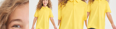 10 great colours. Set in sleeve design with 3 button placket. Self coloured buttons. AWDis's own Neoteric TM textured fabric with inherent wickability. Self Fabric Taped Back Neck. Twin needle stitching detail. Self fabric collar and cuffs. Printed back neck. Worldwide Responsible Accredited Production (WRAP) certified production. Size (Age) XS - 3/4, S - 5/6, M - 7/8, L - 9/11, XL - 12/13