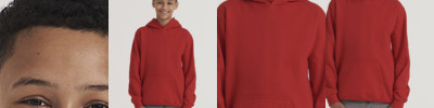Twin needle stitching detailing. Double fabric hood. Kangaroo pouch pocket. Ribbed cuffs and hem, no drawcords to comply with EU regulation on junior sizes. Worldwide Responsible Apparel Production (WRAP) certified production. Available in age 9/11, 12/13, S Adult, M Adult, L Adult .
